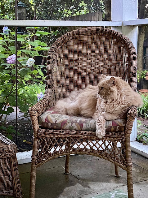 As a reward for even reading this, here are pictures of my cats, Sally (black and white) and Bella (the fluffy one) enjoying the screened porch, their favorite spot: